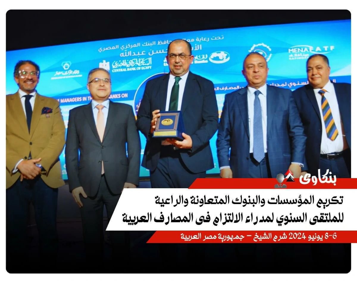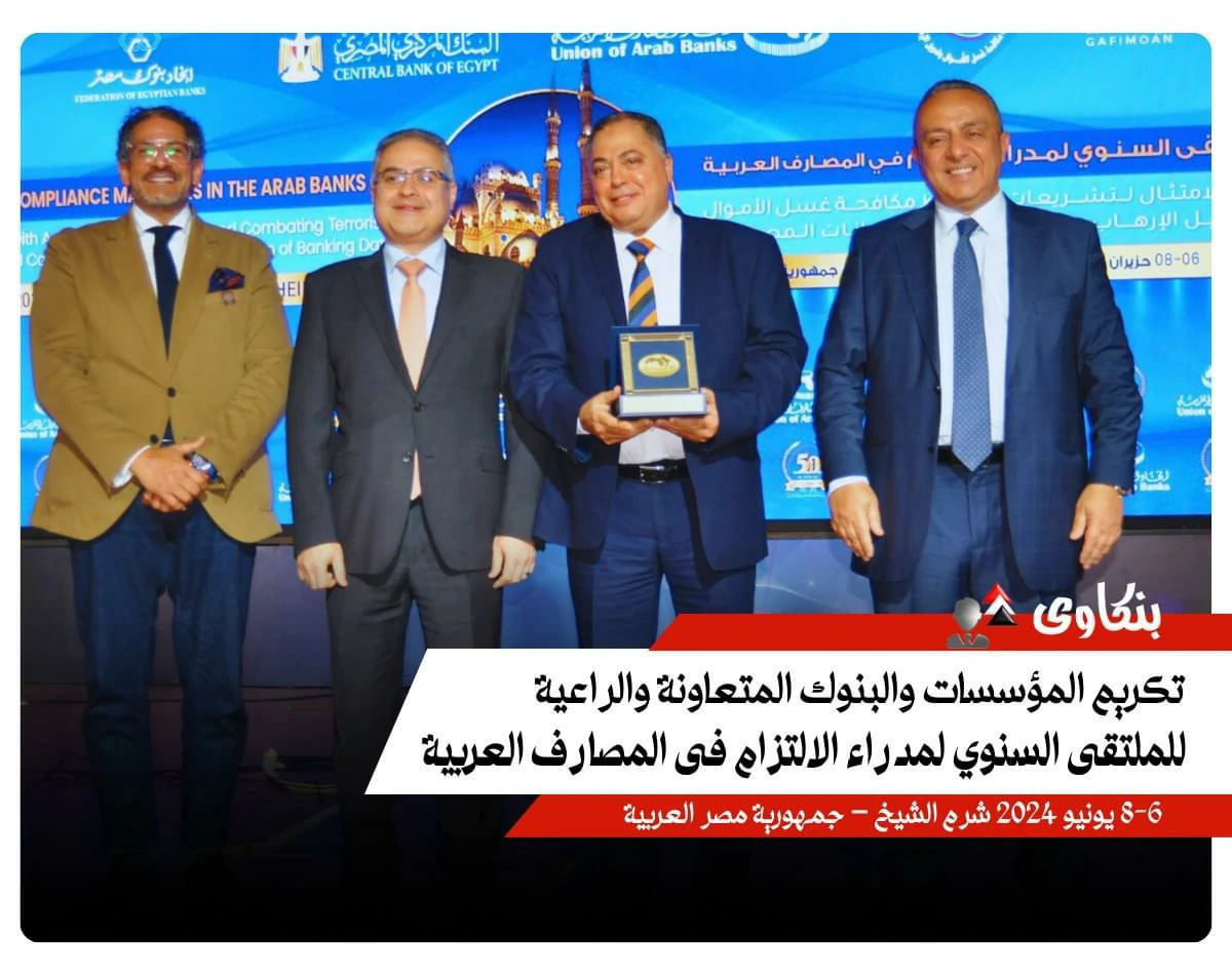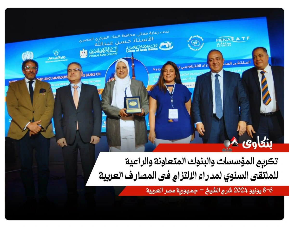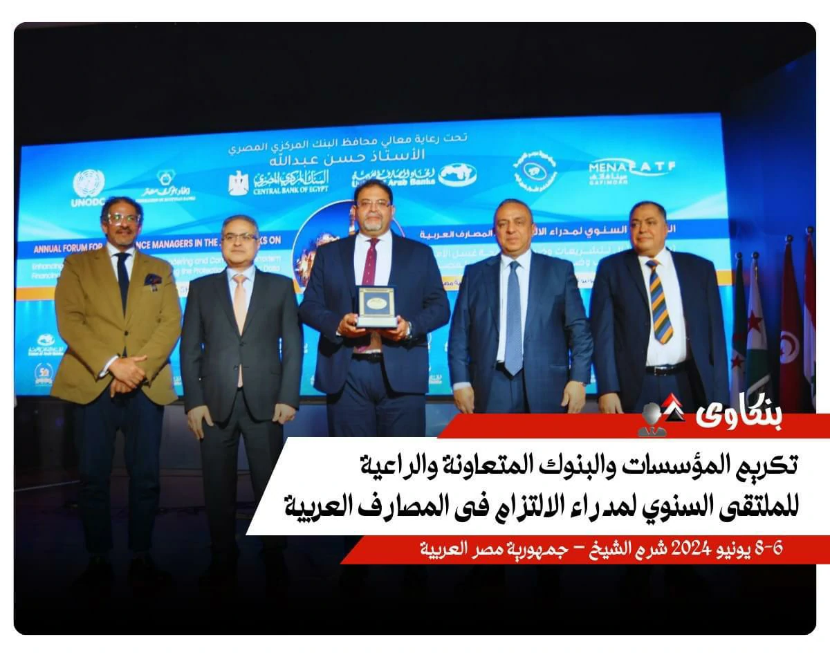 The Union of Arab Banks honored Dr. Ahmed Ali Omar Bin sankr, General Manager of the National Bank of Yemen, a member of the Union of Arab Banks' Board of Directors, and representative of Yemeni banks. Held at the conclusion of the annual forum for compliance managers in Arab banks, the forum was organized by the Union in Sharm El-Sheikh, Egypt, under the title "Enhancing Compliance with Anti-Money Laundering and Counter-Terrorism Financing Legislation and Controls and Ensuring the Protection of Banking Data." The forum was held under the patronage of Hassan Abdullah, Governor of the Central Bank of Egypt, from June 6 to 8, and was attended by a host of Arab banking leaders and prominent figures. This honor is a culmination of Dr. Ahmed Ali Omar Bin sankr's efforts to enhance compliance and transparency standards in the banking sector, as well as his ongoing efforts to develop and improve banking performance in Yemen, contributing to strengthening financial and economic stability in the country.