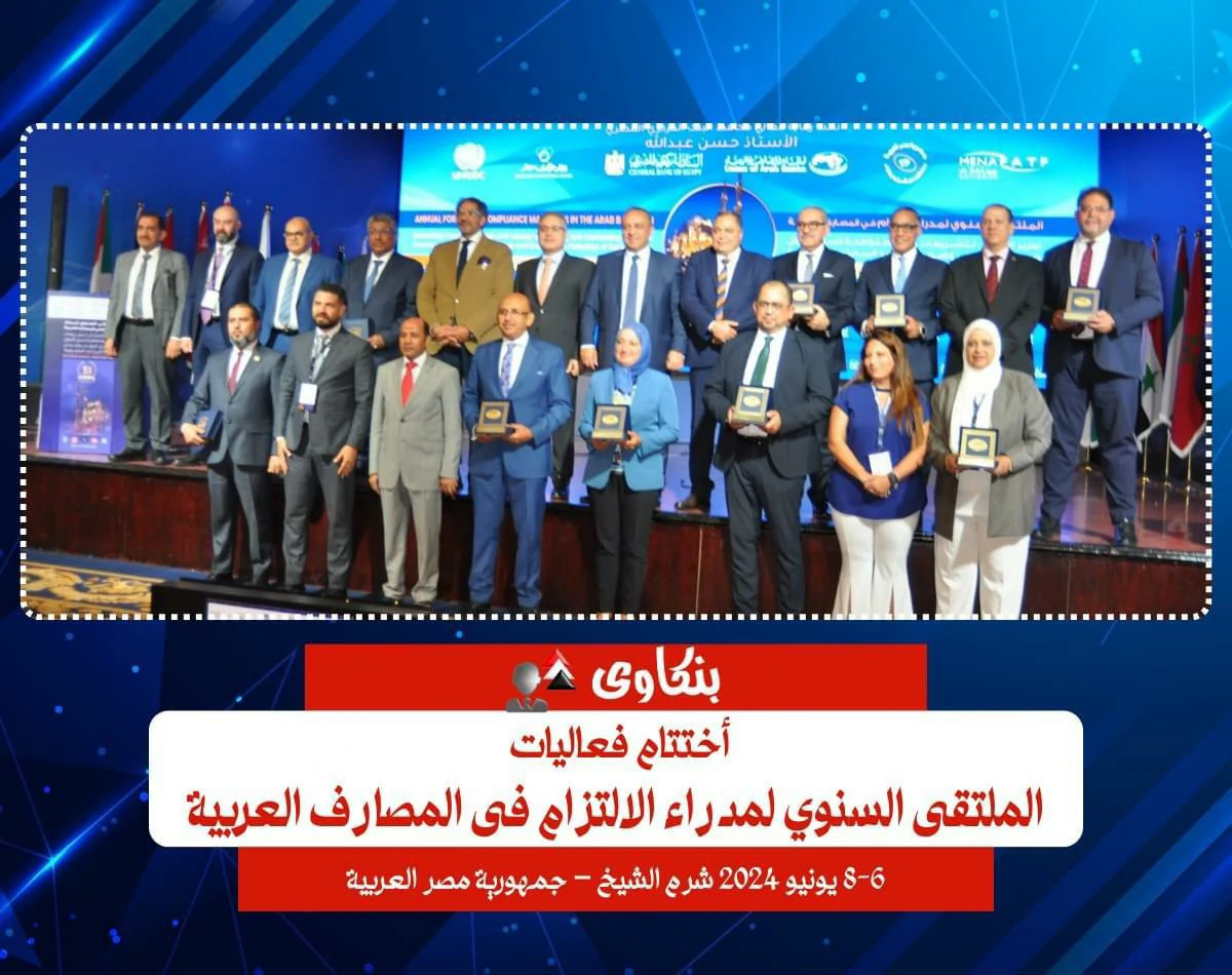 The annual forum for compliance managers in Arab banks, organized by the Union of Arab Banks in Sharm El-Sheikh, Egypt, concluded. Dr. Ahmed Ali Omar Bin Sankr, General Manager of the National Bank of Yemen and a member of the Board of Directors of the Union of Arab Banks representing Yemeni banks, was honored with the Sharm El-Sheikh Forum Shield at the conclusion of the annual forum for compliance managers in Arab banks. The forum, organized by the Union of Arab Banks in Sharm El-Sheikh, was titled "Enhancing Compliance with Anti-Money Laundering and Counter-Terrorism Financing Legislation and Ensuring the Protection of Banking Data," under the patronage of Hassan Abdullah, Governor of the Central Bank of Egypt.