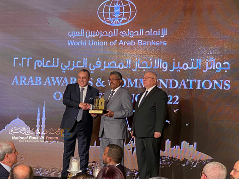 | The National Bank of Yemen has been awarded the Best Bank in Yemen for the year 2024, for the fourth consecutive year, by the World Union of Arab Bankers in Cairo, Egypt. During a grand ceremony held by the Union to distribute its annual awards to prominent banking figures and distinguished Arab banks, Dr. Ahmed Ali Bin Sankr, General Manager of the National Bank, was honored to receive the Excellence Award as the Best Bank in Yemen and the Strongest in Implementing Financial Inclusion. Dr. Bin Sankr expressed his great happiness with the continued excellence of the National Bank, and that this is truly what its employees and members deserve. He wished the bank to always be honored and distinguished in Arab and international forums, emphasizing its well-established position among Arab banks and at the international level, and that this honor demonstrates the strength, solidity and status of this pioneering bank. The bank's honor did not come out of nowhere, but rather from the solidity and strength of its financial position, which is met with appreciation and honor in a manner befitting its status. The bank now aims to achieve this and to do better in the future, regardless of the difficulties. On this celebratory occasion, the National Bank of Yemen congratulates the Prime Minister, Dr. Ahmed Awad bin Mubarak, the Minister of Finance, Mr. Salem bin Braik, the Bank's Board of Directors, its employees and all its customers on this honor, and for their continuous support to the Bank in achieving successive accomplishments. The National Bank of Yemen has received several banking awards in recent years, including the Excellence Award in Arab Banking Achievement for the year 2021 as the best Yemeni bank with banking experience, professionalism, trust, and a long history spanning more than half a century, proving that it is the Yemeni banking edifice that can be trusted and relied upon in all circumstances. |