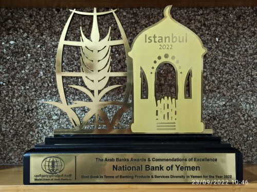 For the second year in a row.. The International Union of Arab Bankers awards the National Bank the award for the best bank in Yemen
